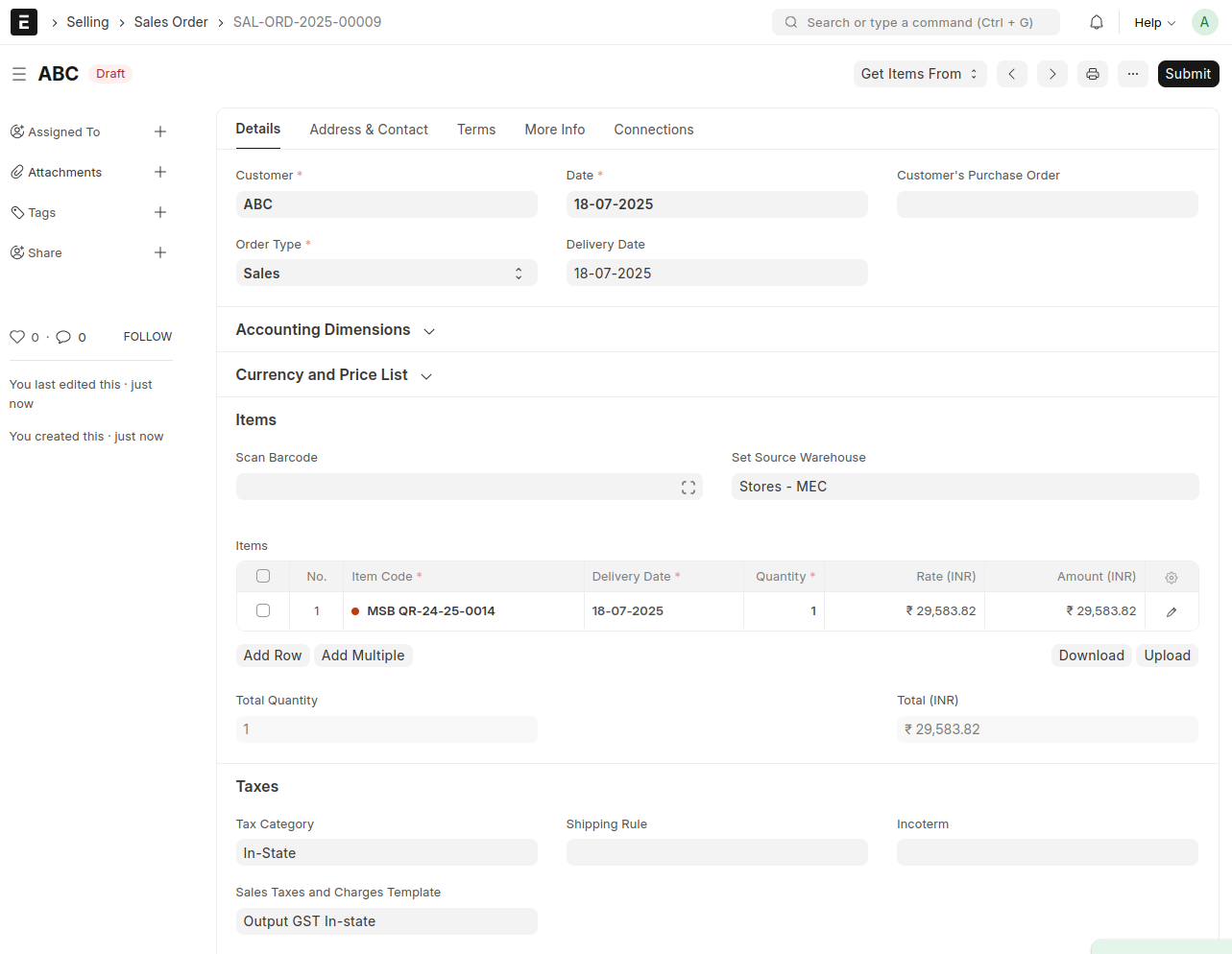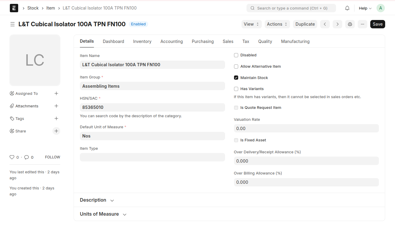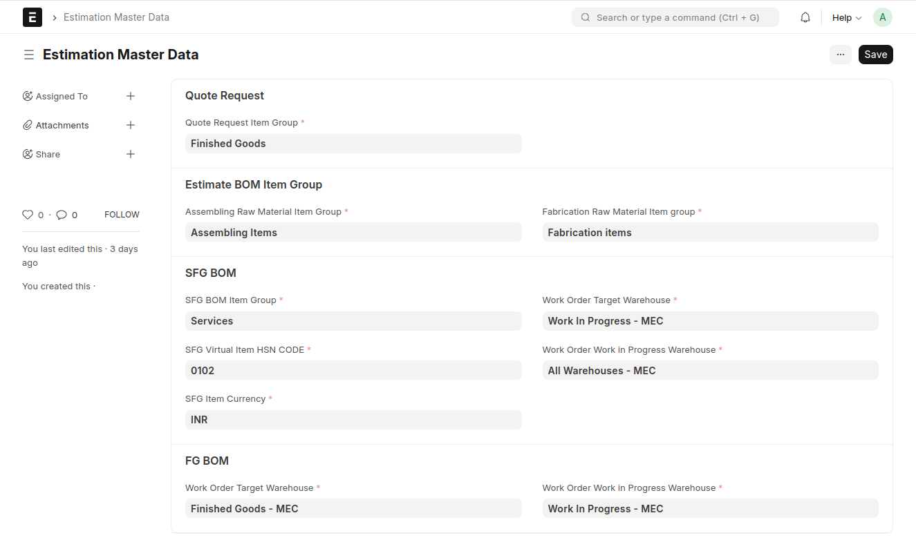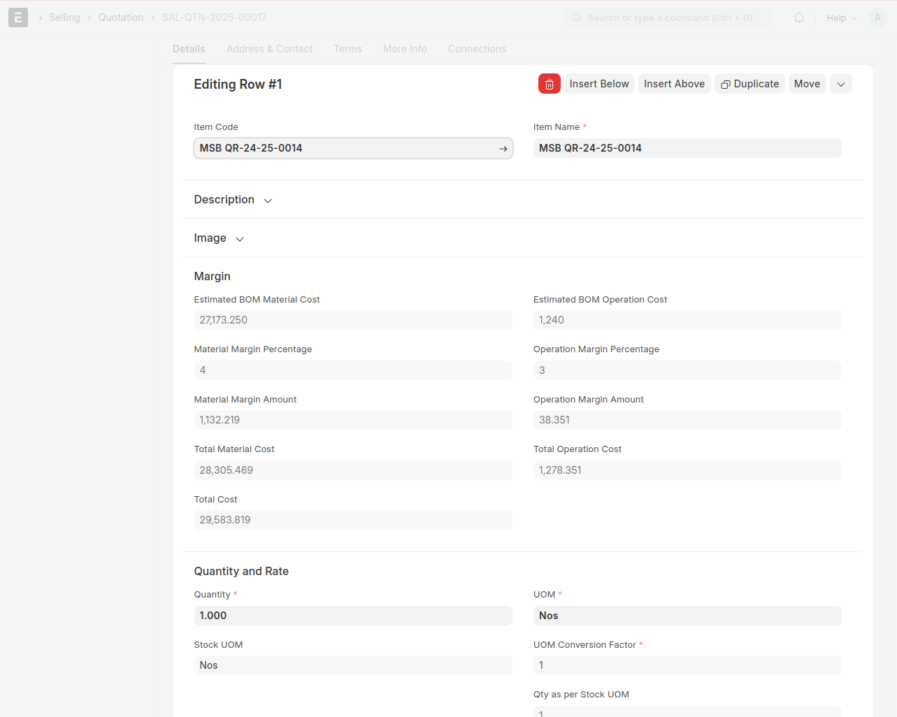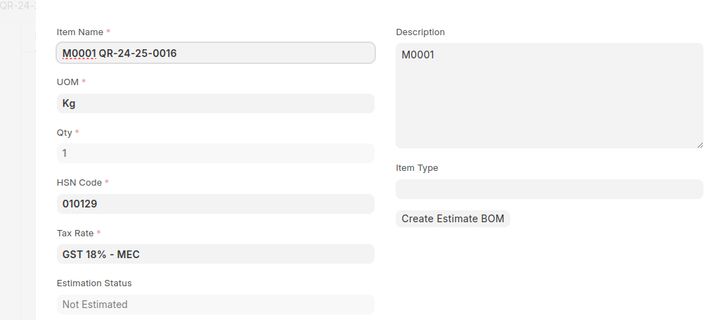 After saving, items will be created based on the details provided in the Quote Request. These items can be viewed in the Item Master