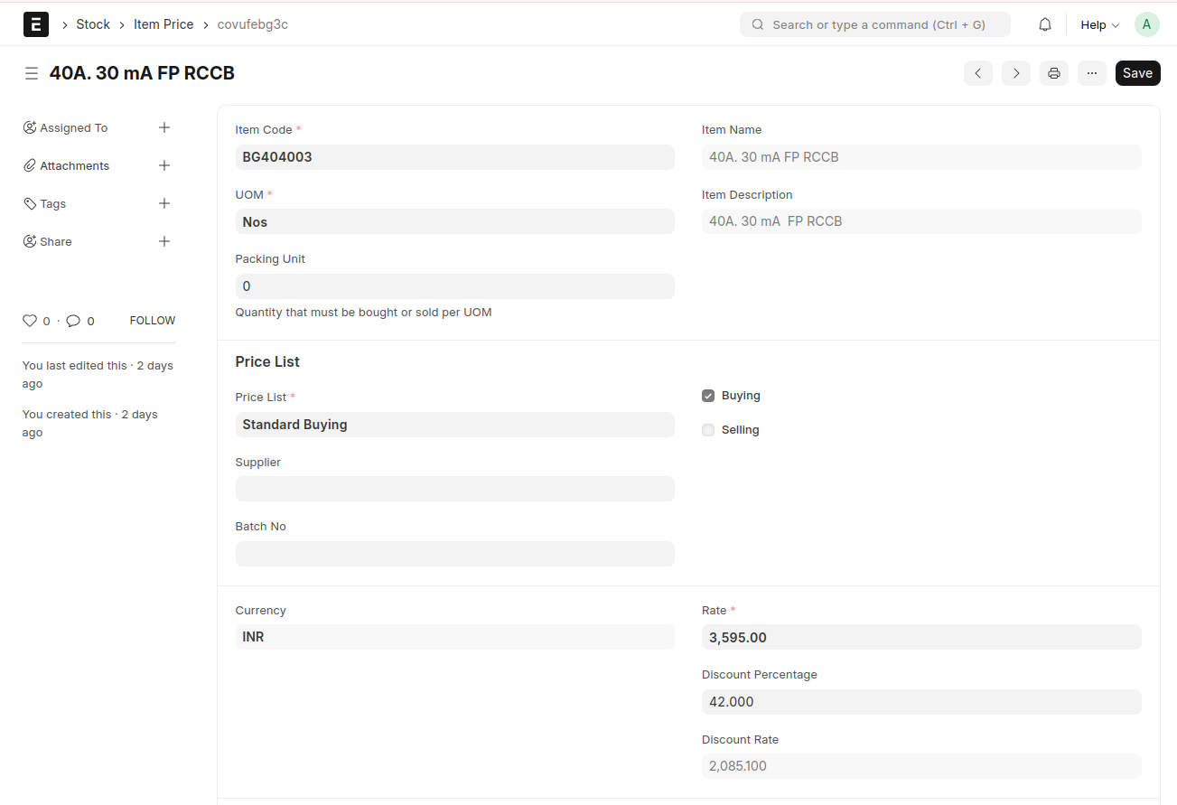 * Select the Price List as Standard Buying, Standard Selling, or any other Price List you may have created