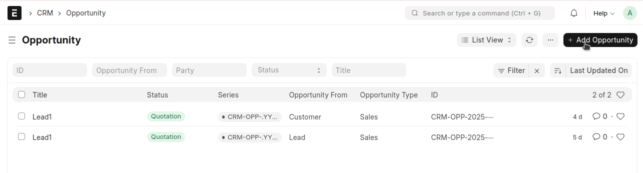 * In the 'Opportunity From' field, select 'Lead' if the opportunity is from a lead, or select 'Customer' if it is from a customer