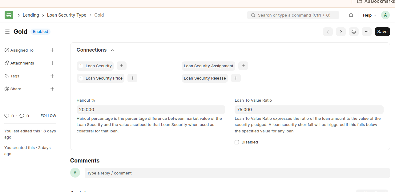 Loan Security Type defines the type of security that can be pledged against a loan.
