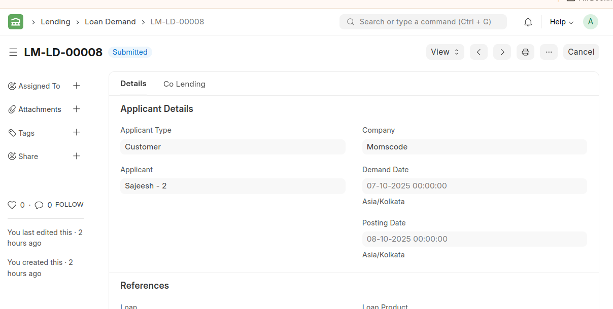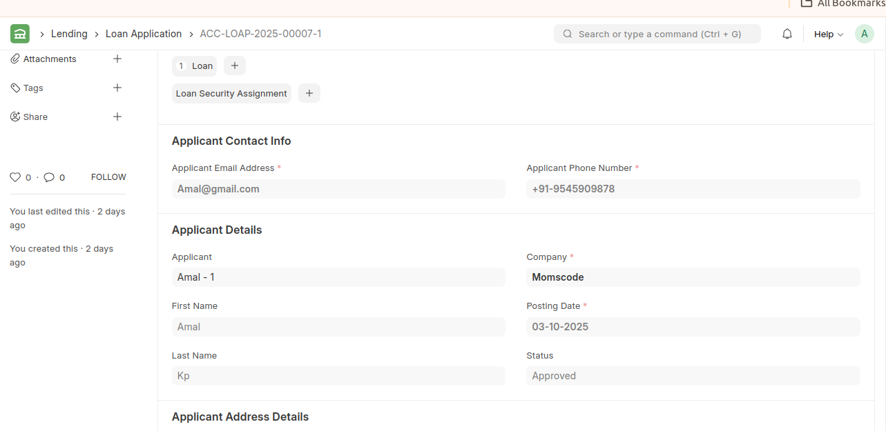 * After saving the loan application, if the applicant is a customer, a record is created in the Customer master.