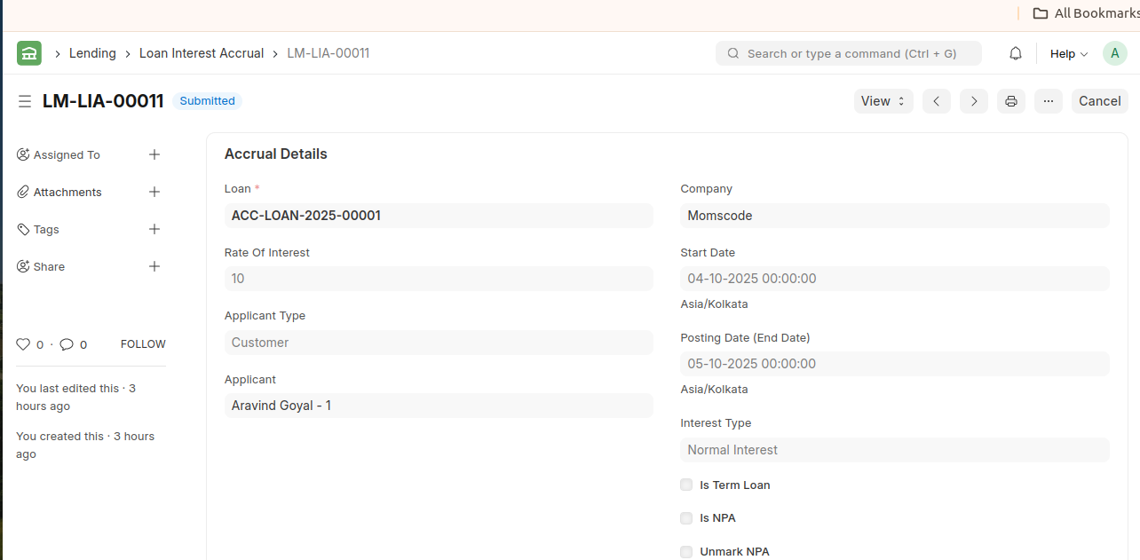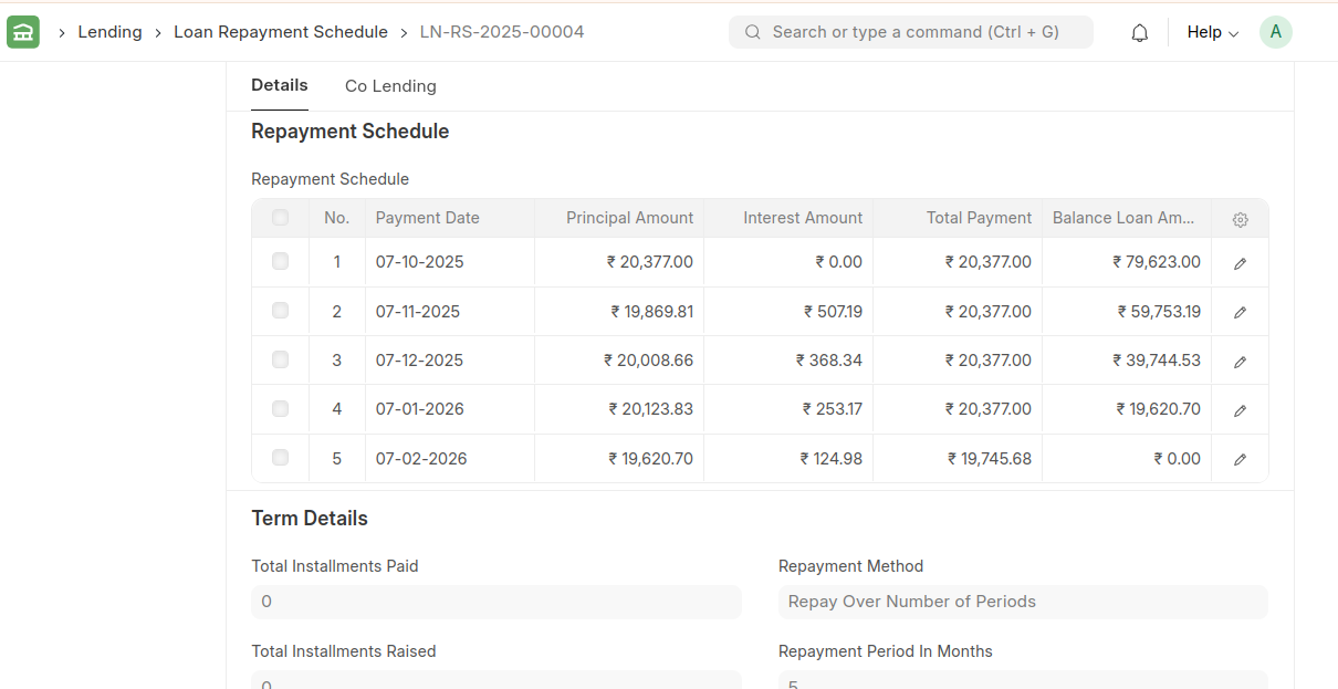 So, if a borrower pays ₹10,000, ERPNext applies it like this: