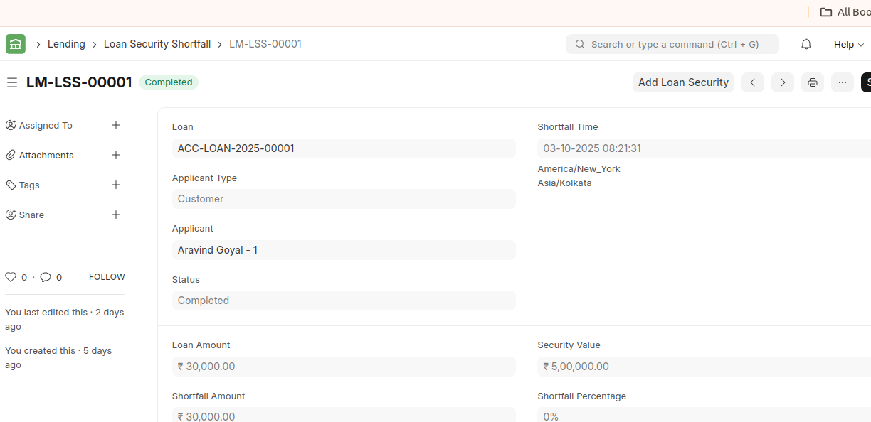 - Process Loan Security Shortfall record is created on loan security price update and is also used for manual processing of Loan Security Price.