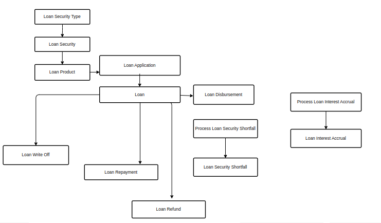 - All the loan related documents like Loan Disbursement, Loan Repayment, etc are linked to a Loan.