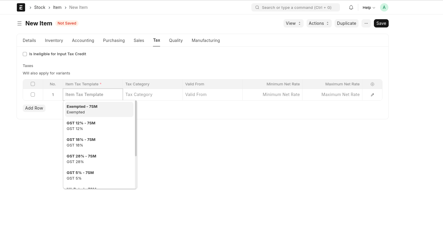 - Select Tax Category from the Item Tax Template Table