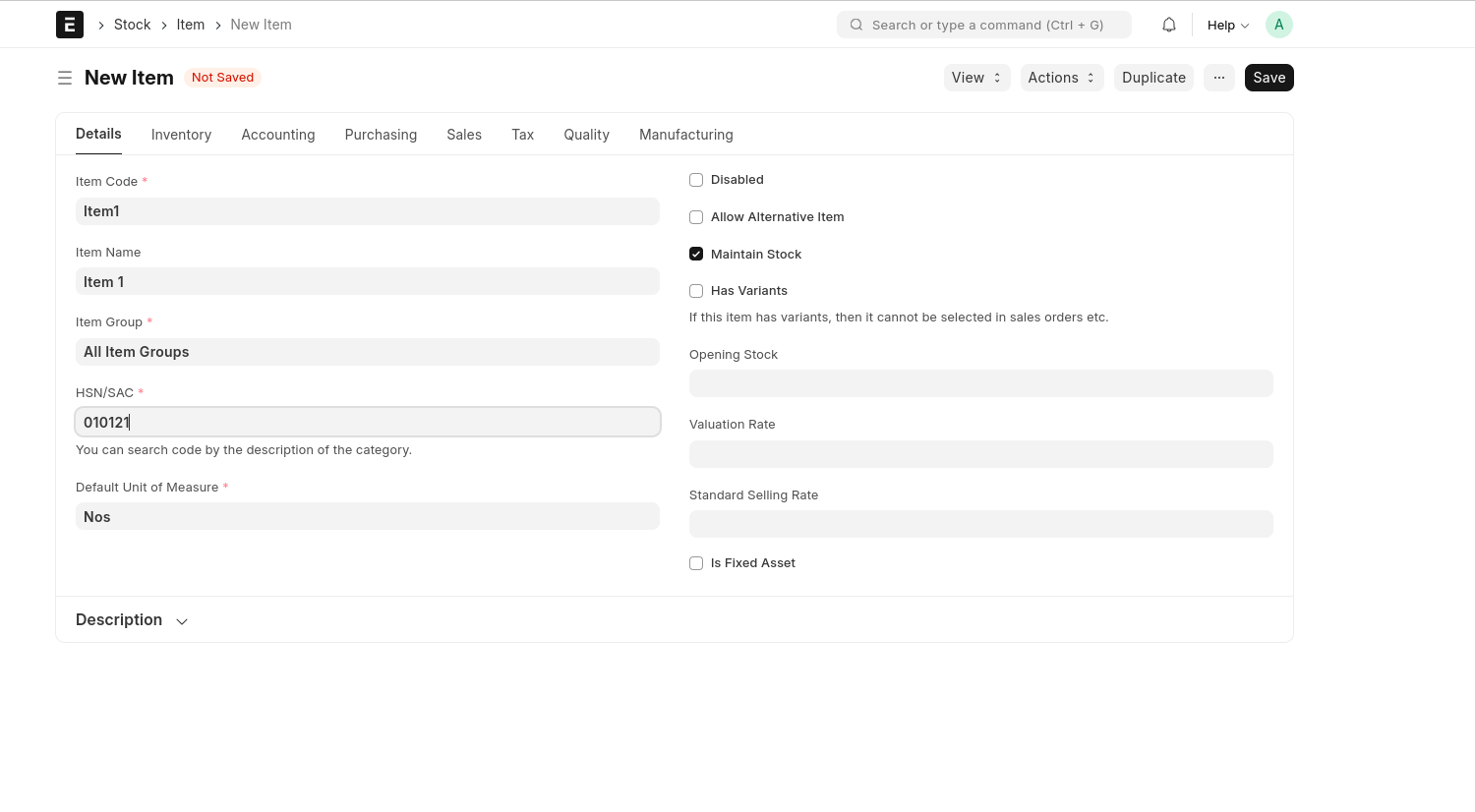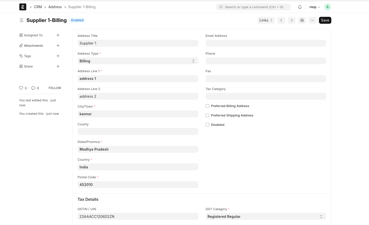 Fill The Mandatory Fields and Save the Document