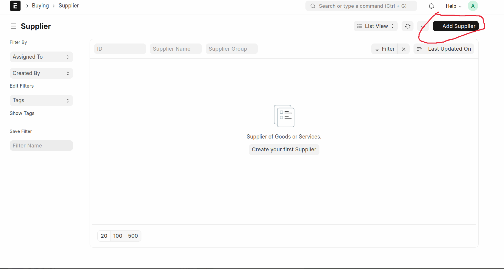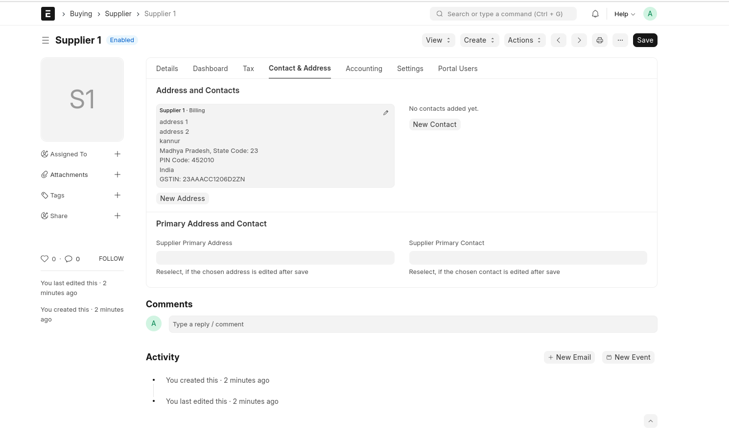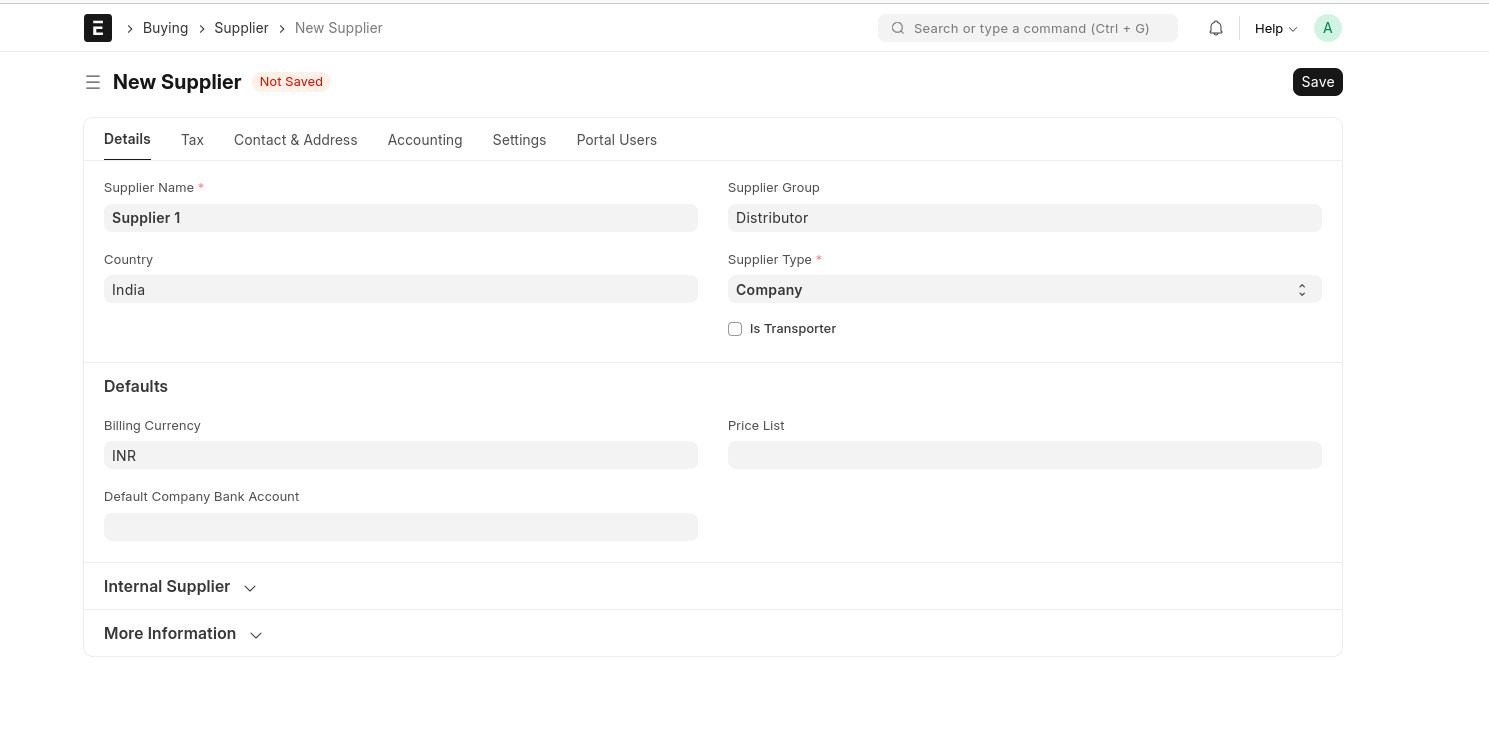 Save the Supplier, Then The Supplier Created On the Dashboard
