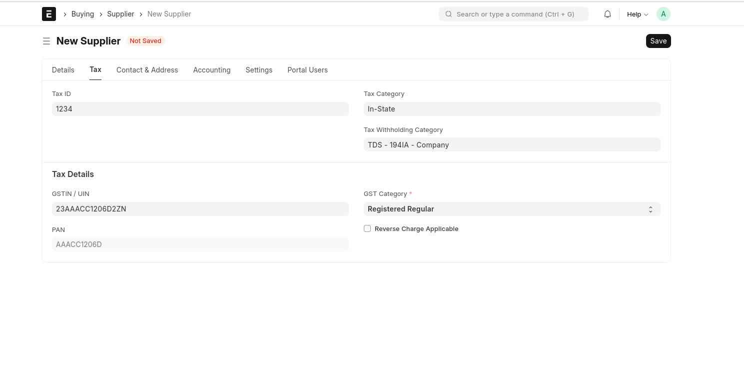 The Supplier Have GST, Then fill The Fields