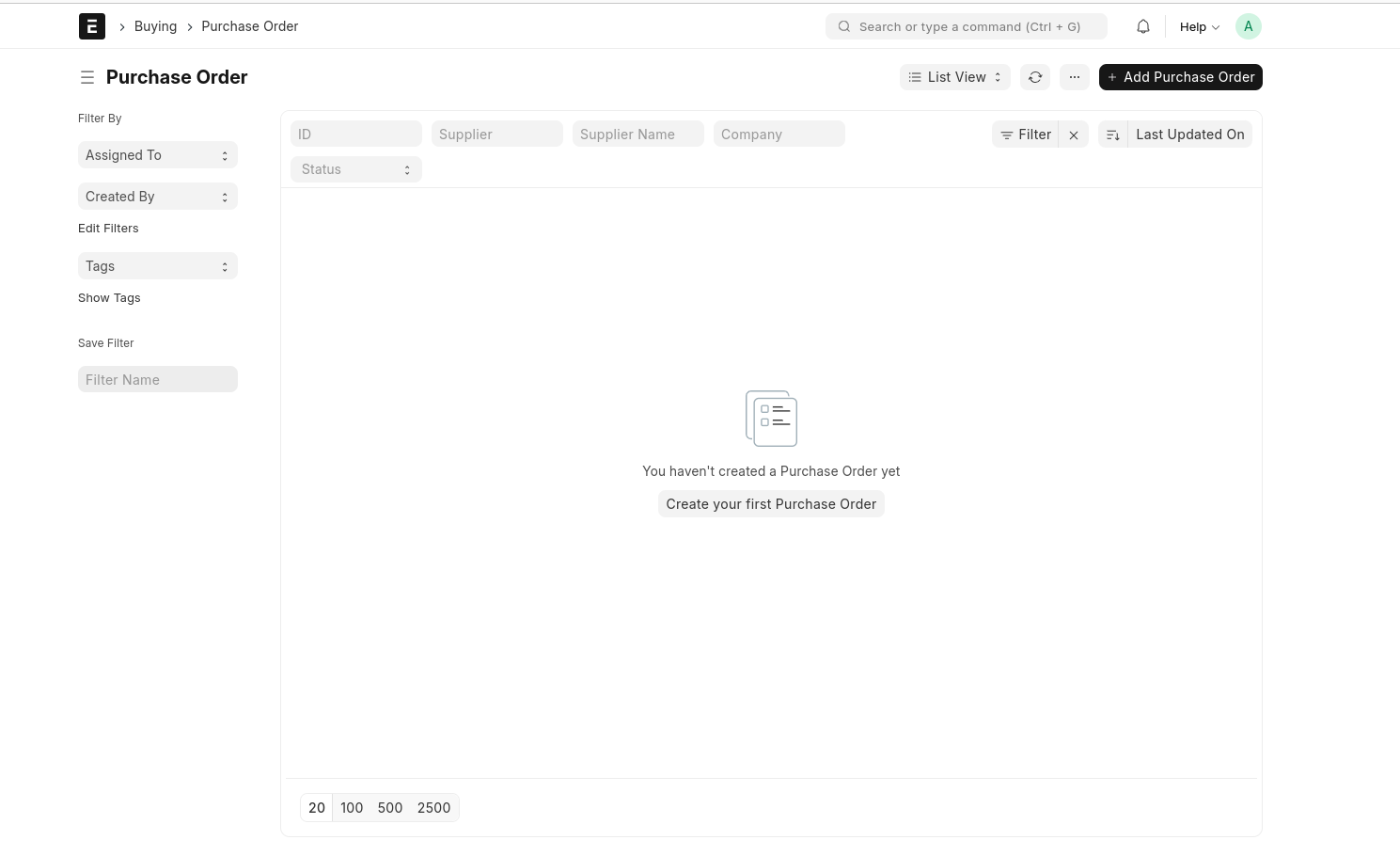 Create A New Purchase Order --> Select Purchase Order And Add Purchase Order