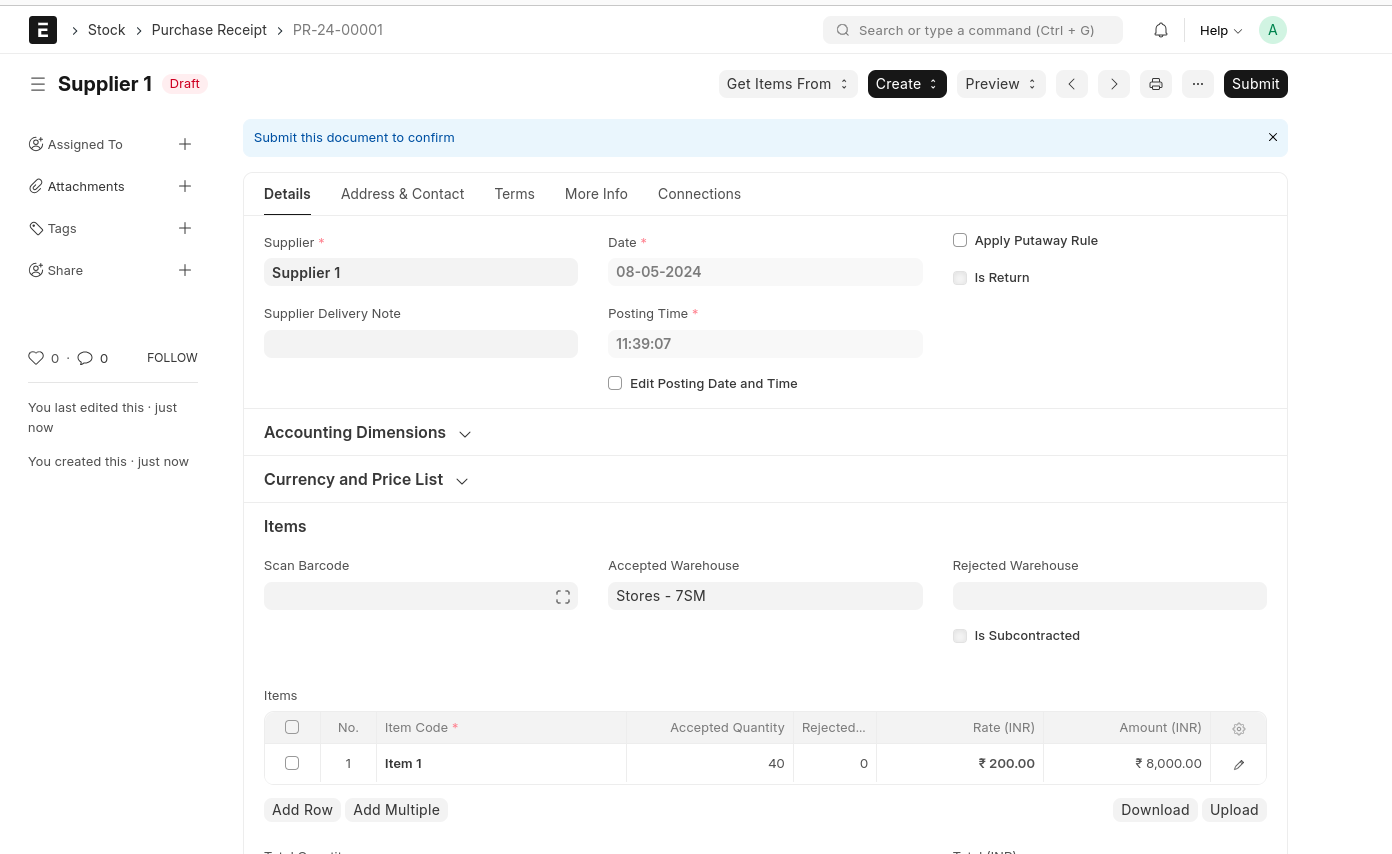 Save And Submit The Purchase Receipt