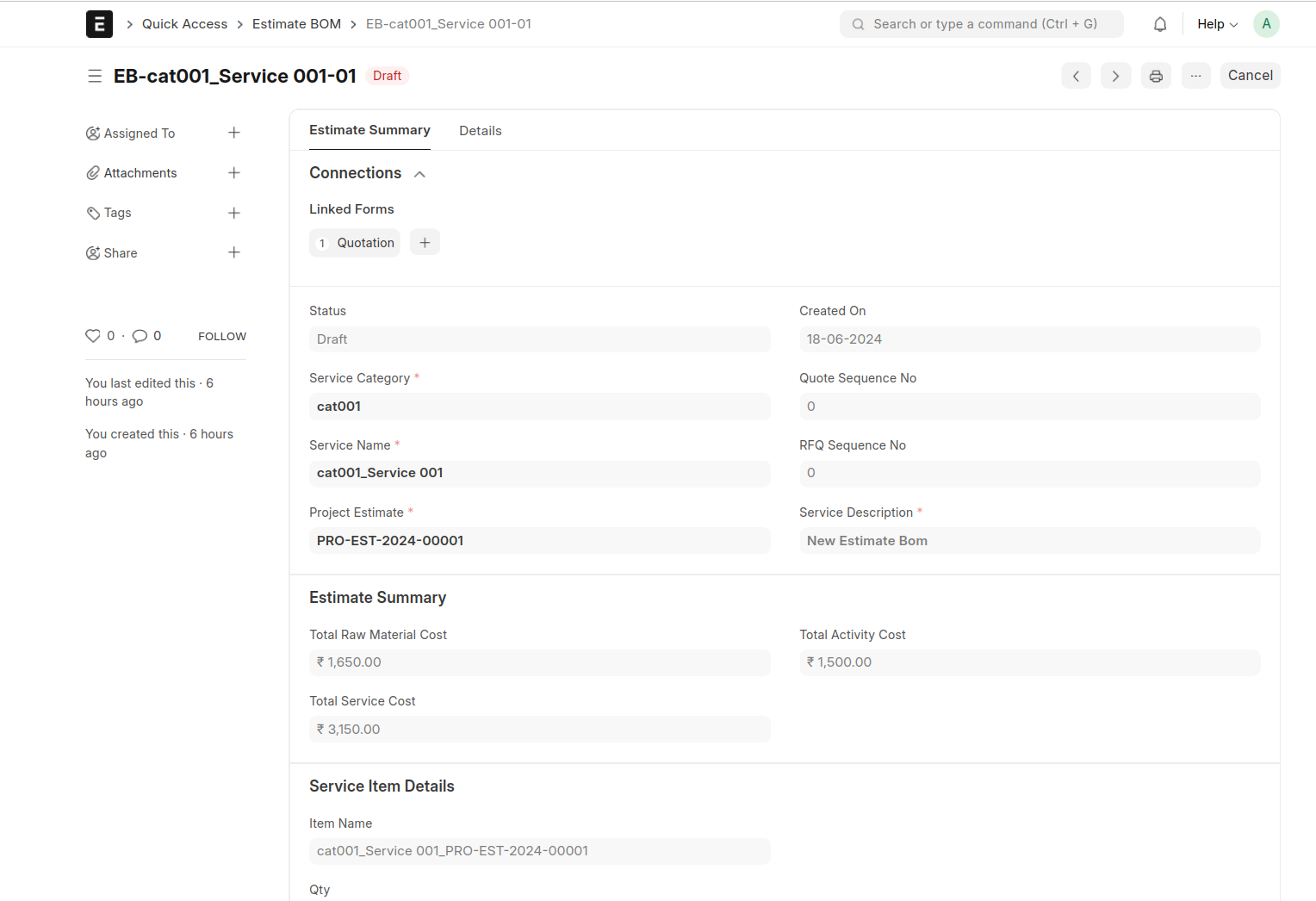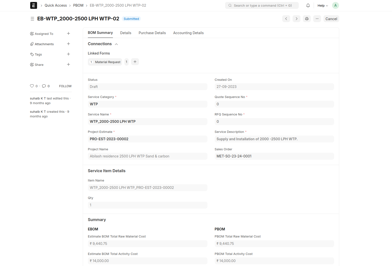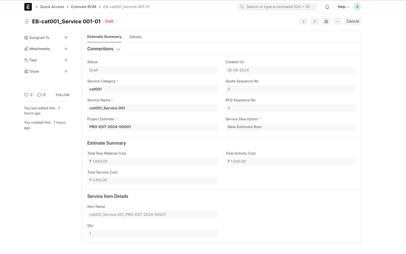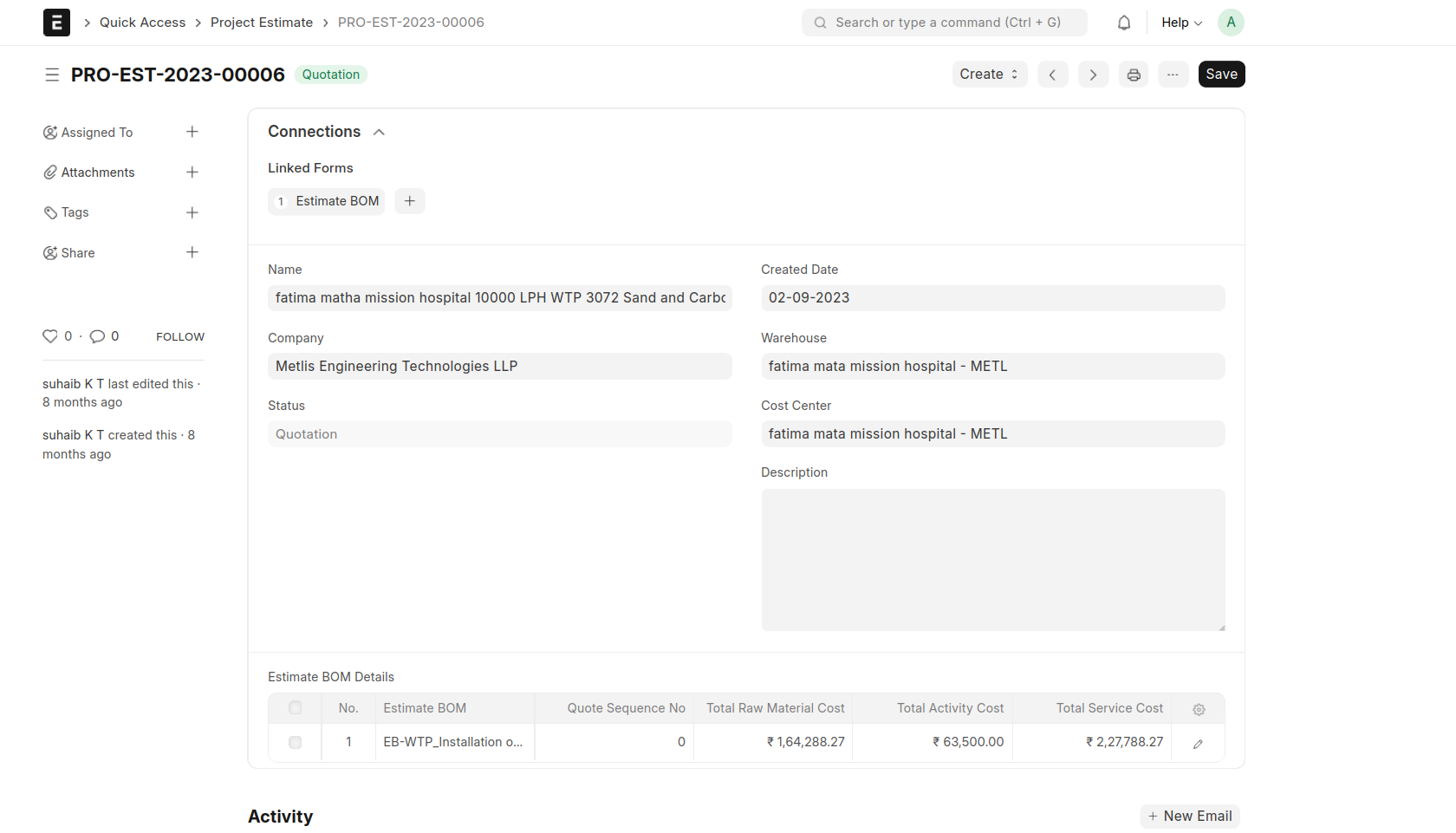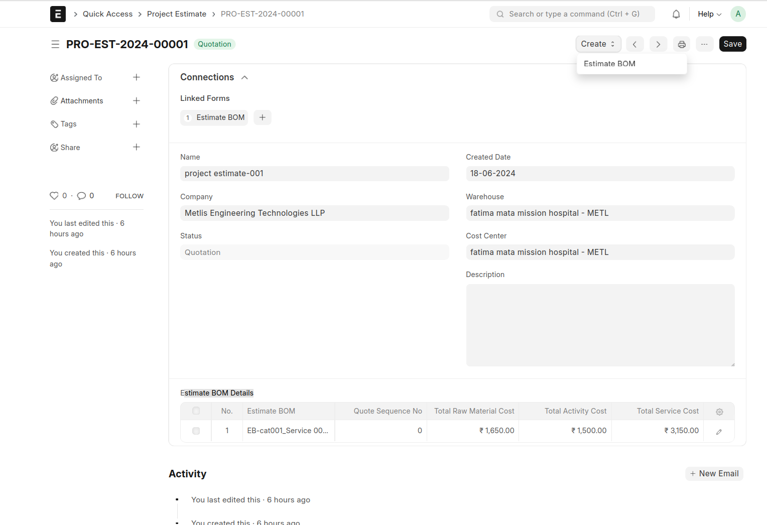 add a project Name ,Warehouse, Cost Center and Estimate BOM Details