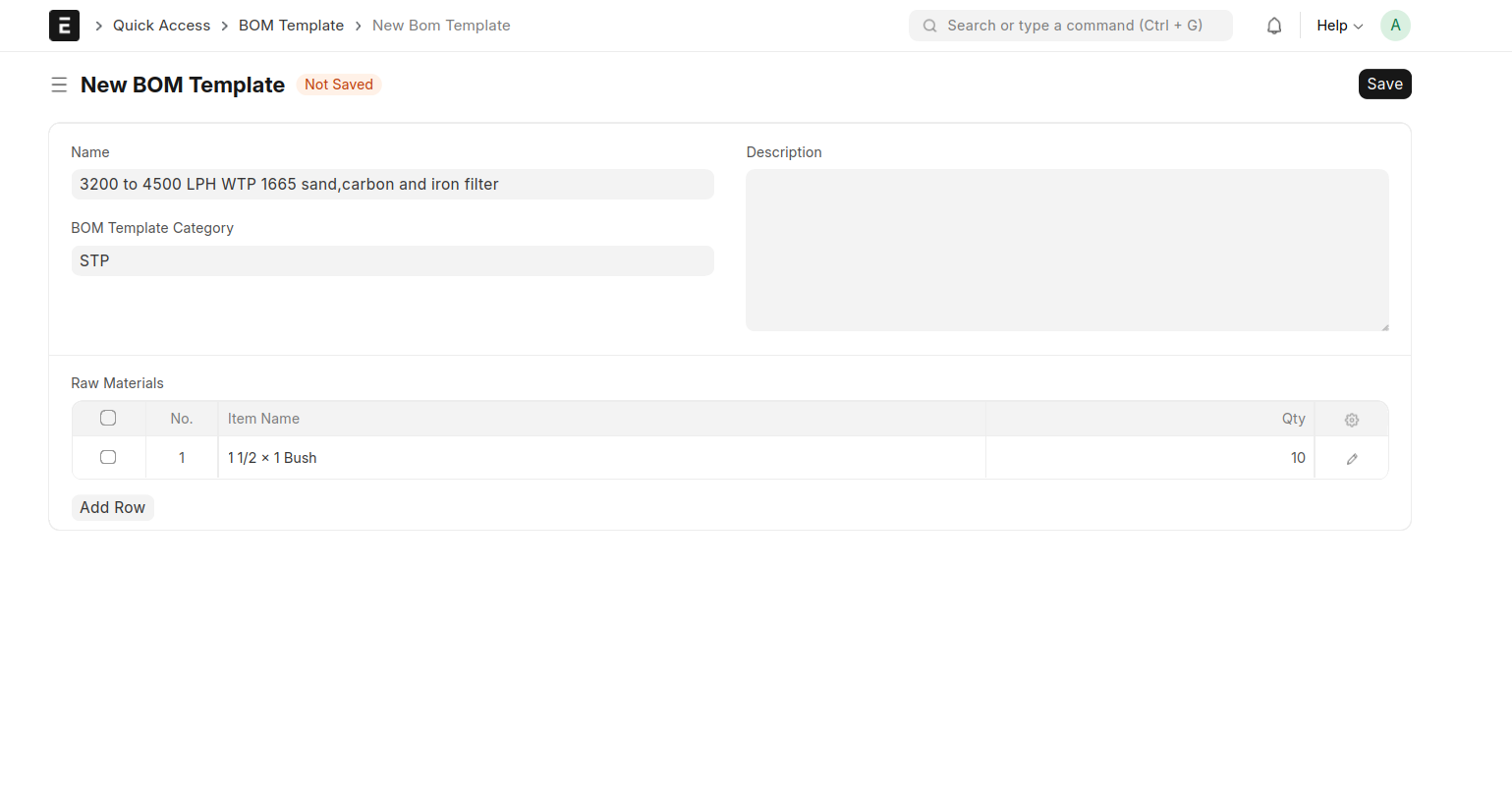 Select BOM template --> add a Name -->BOM Template Category --> then save