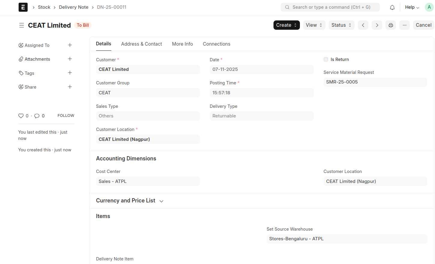 - Save and Submit the Delivery Note