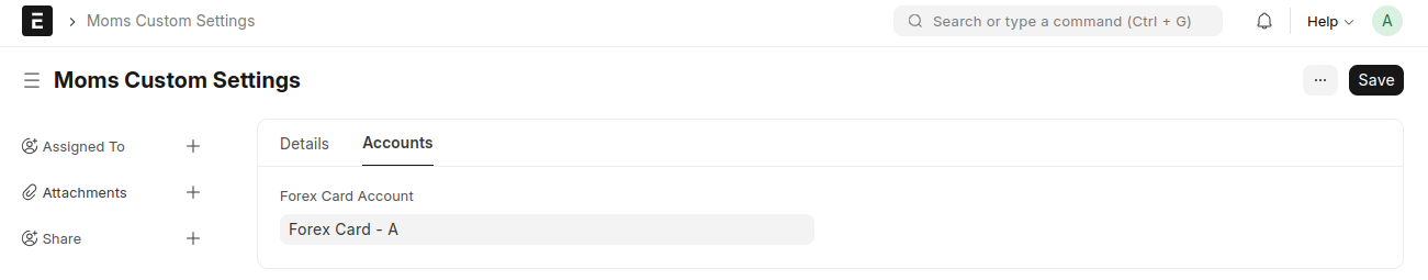 1. In Moms Custom settings, set 'Forex Card account'