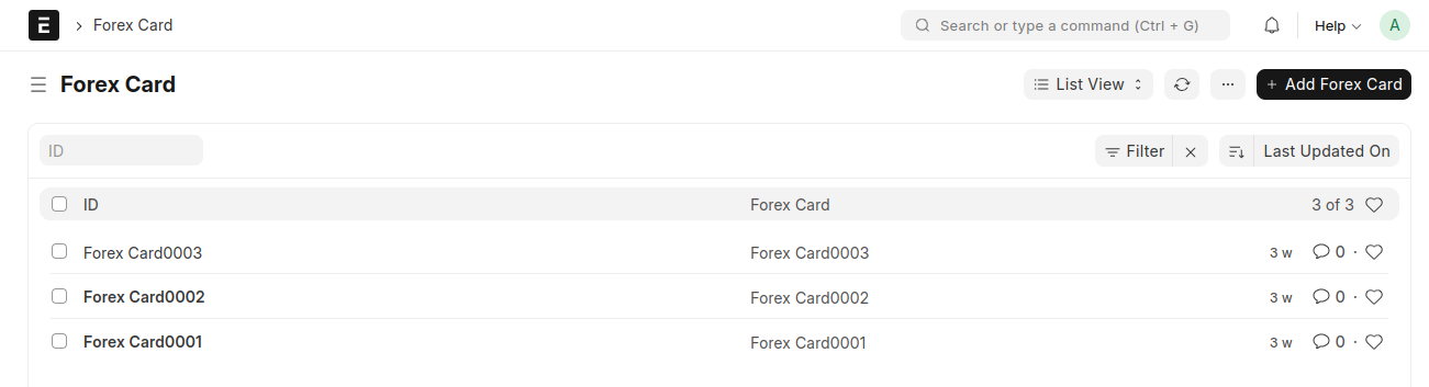 2. Create 'Forex Card'