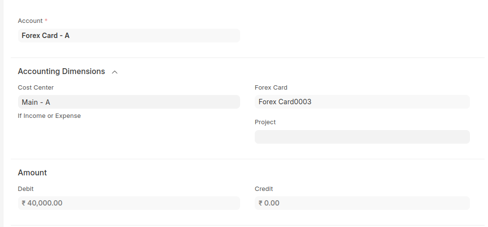 - Select Account Head Forex Card