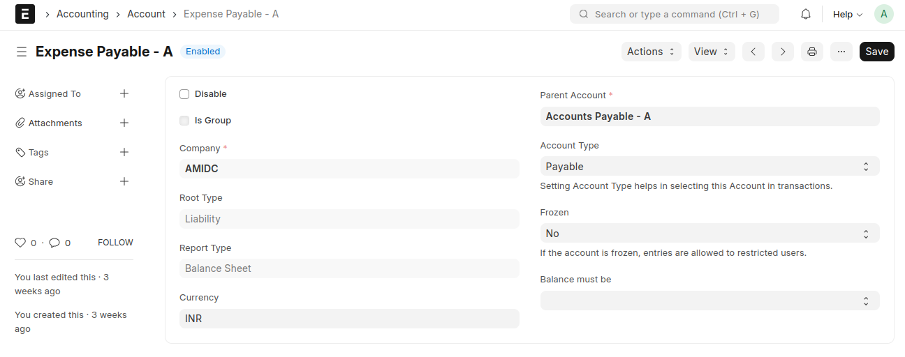 - Select the Payable Account