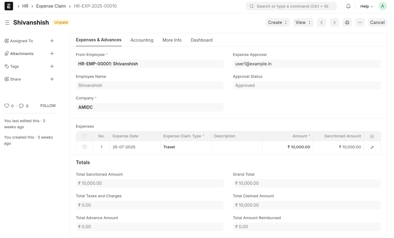 - Select the Expense Approver