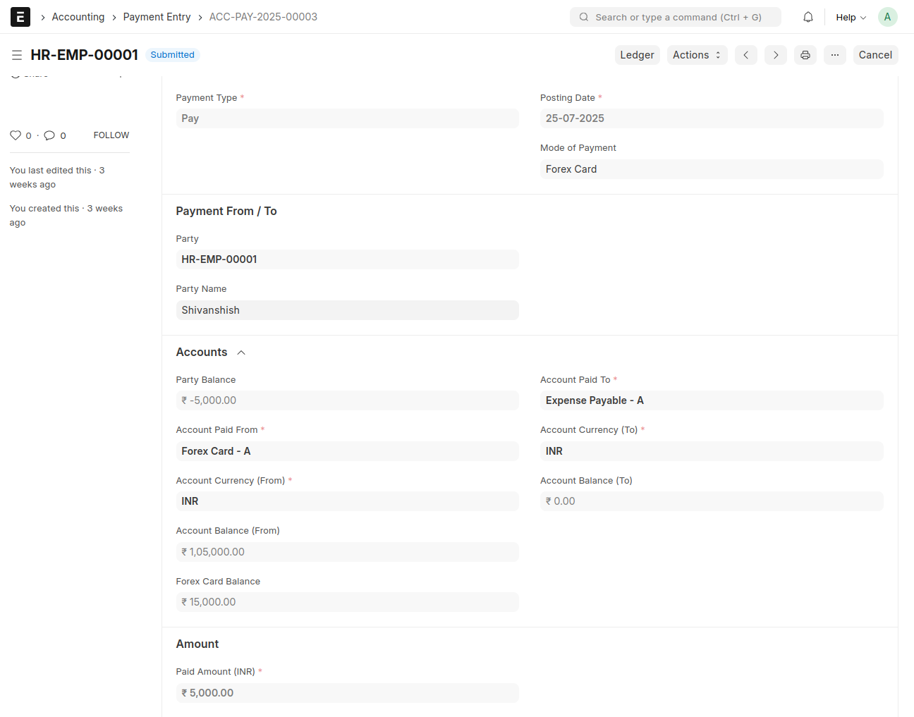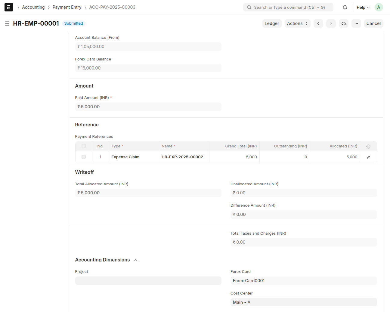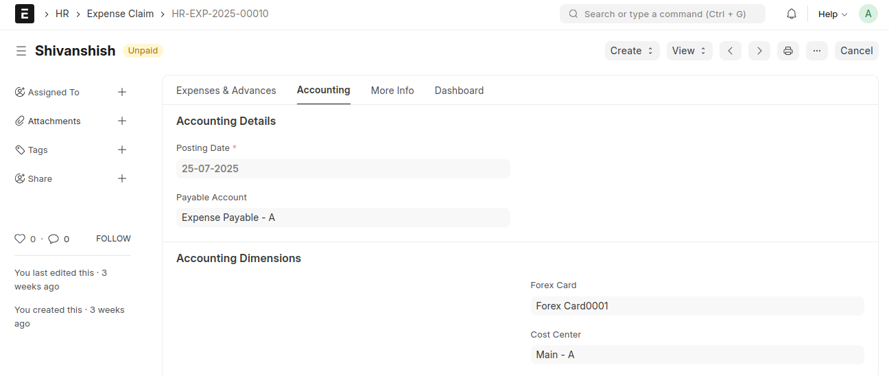 - Forex Card will be fetched from Expense Claim