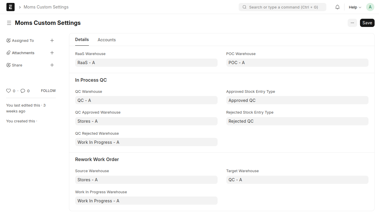 - Set a Rejected Warehouse