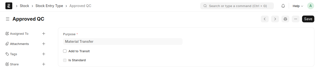 Create a Stock Entry Type for Approved QC with the purpose set to 'Material Transfer'