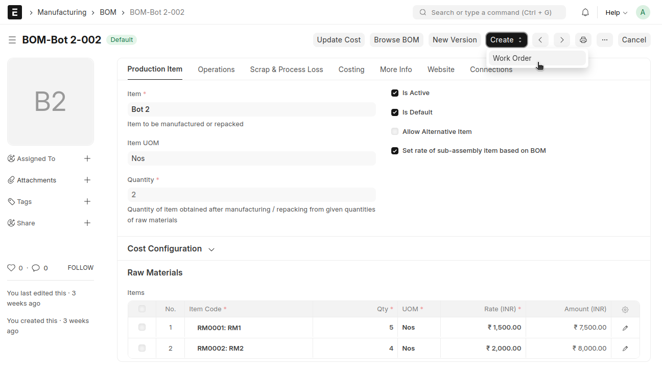 Crete a Work Order from BOM