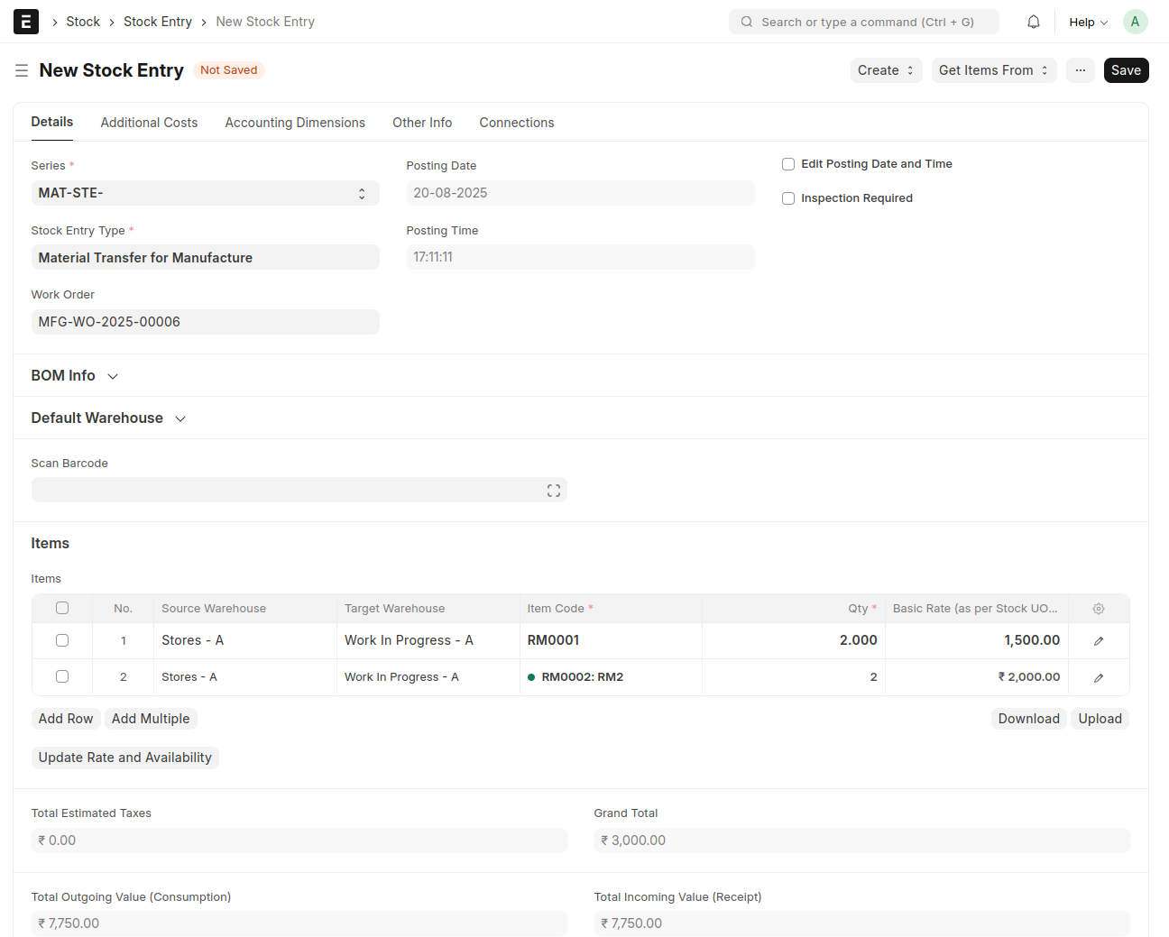 Create Stock Entry from Work Order
