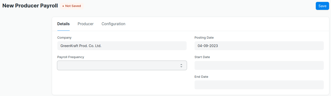 --> Go to to Producer Payroll list, click on New.