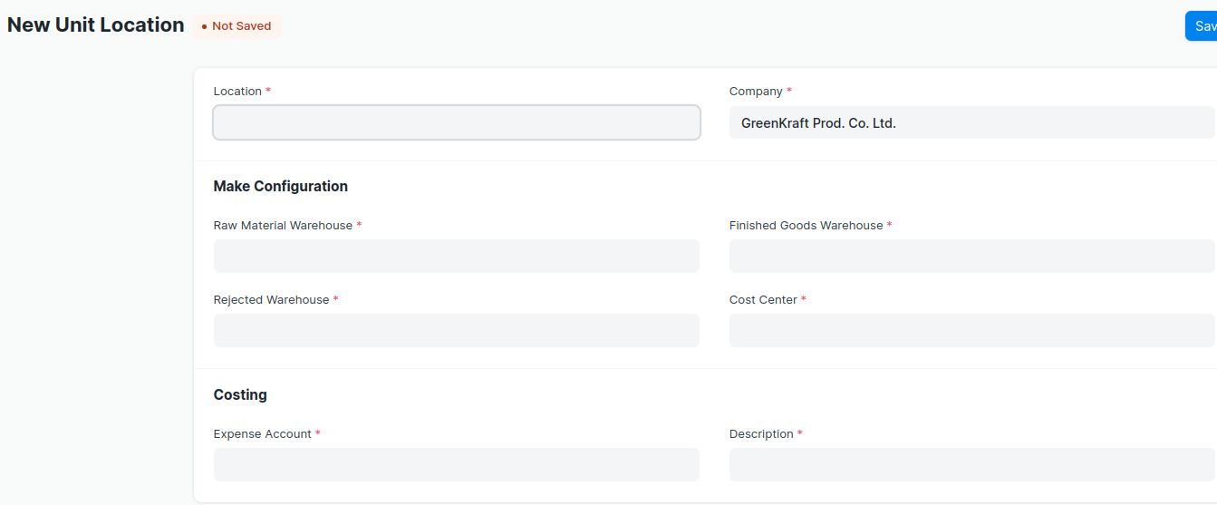 --> Enter the ‘Location’ and setup the configuration details . All are mandatory fields.