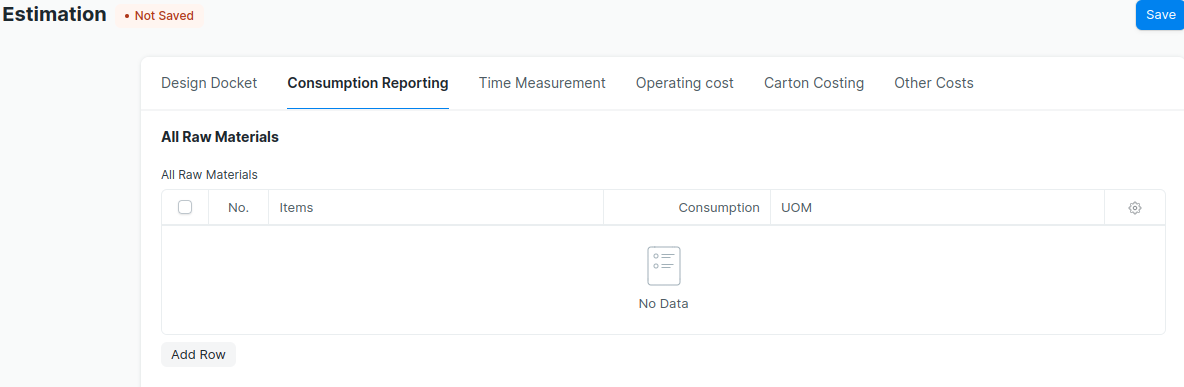 --> Select the Raw material Items and enter the consumption to the table ‘All Raw