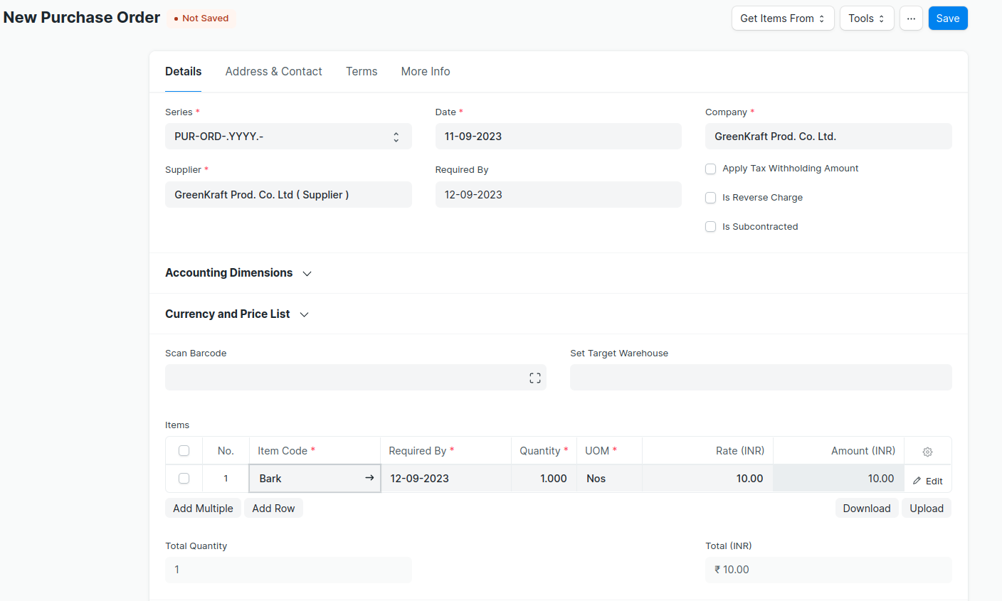 --> Create Purchase Order