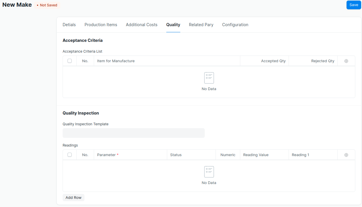 --> Select ‘Quality Inspection Template’ .