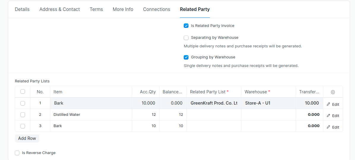 --> Select ‘Is Related Party Invoice’ checkbox.The items in the ‘Item‘ table will be fetch