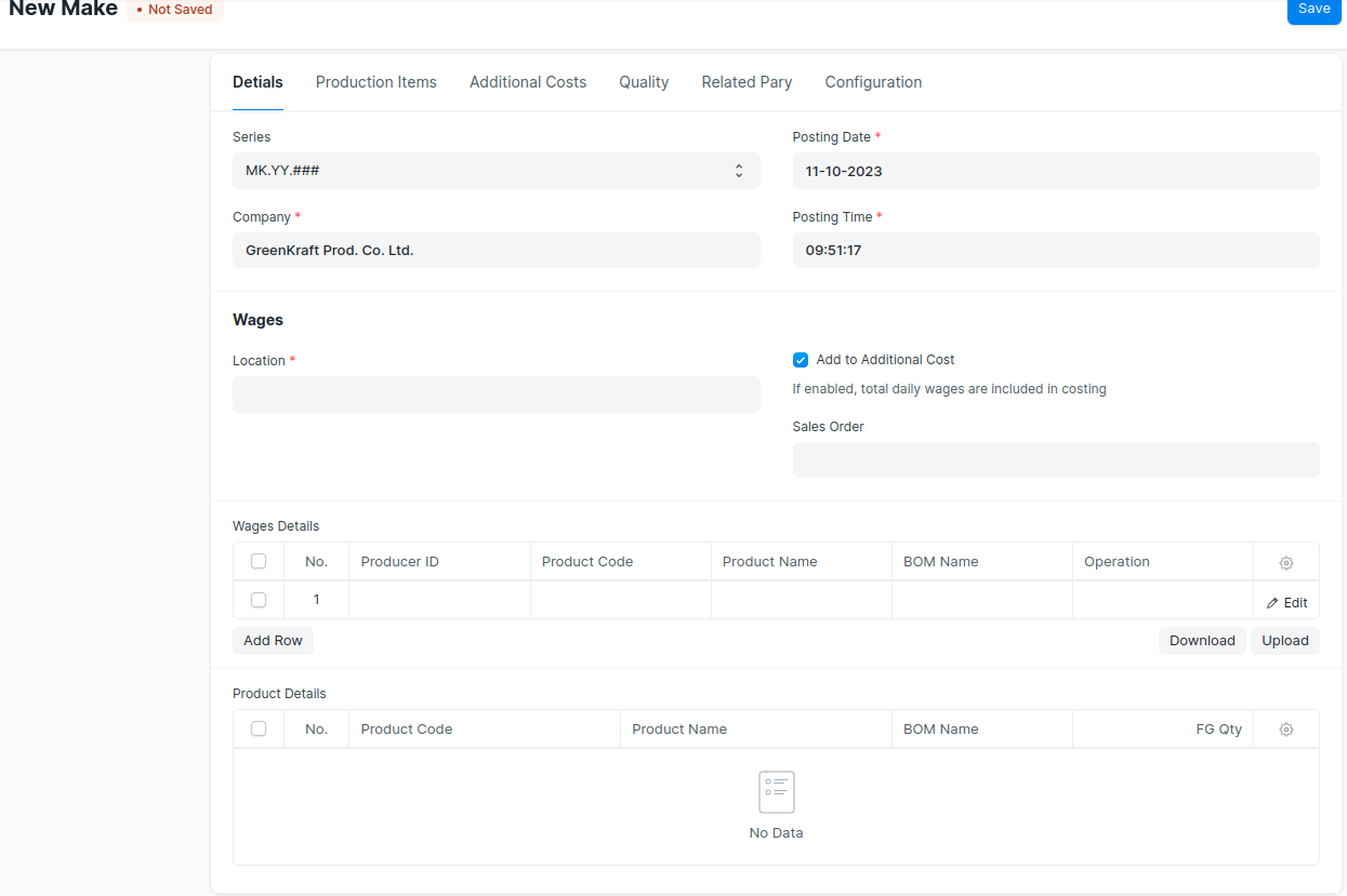 - The ‘FG Qty’ can be changed from the table ‘Product Details’.it will be changed