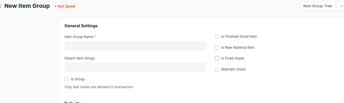 - If the Item Group is for Finished Good Item ,then select the check box ‘is Finished