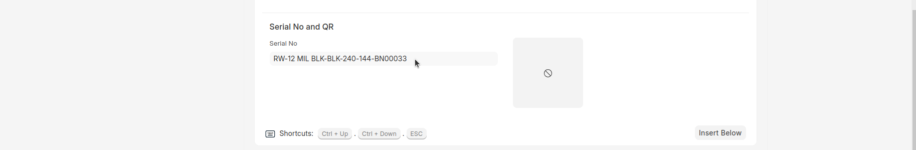 Button: Click the “Create Serial No” button to generate a serial number for the finished good item.