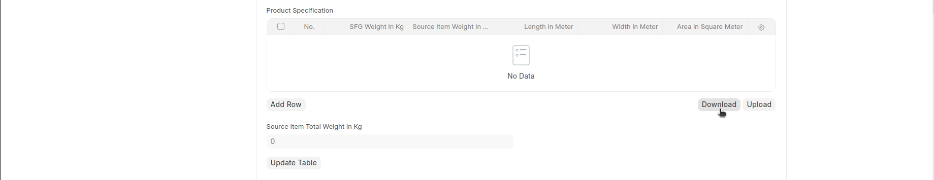 Item Group: Select an item group. Item: Choose an item from the selected item group. Source Warehouse: Choose the source warehouse to check stock availability. Available Qty (Kg): Displays the available quantity of the selected item in the chosen warehouse.