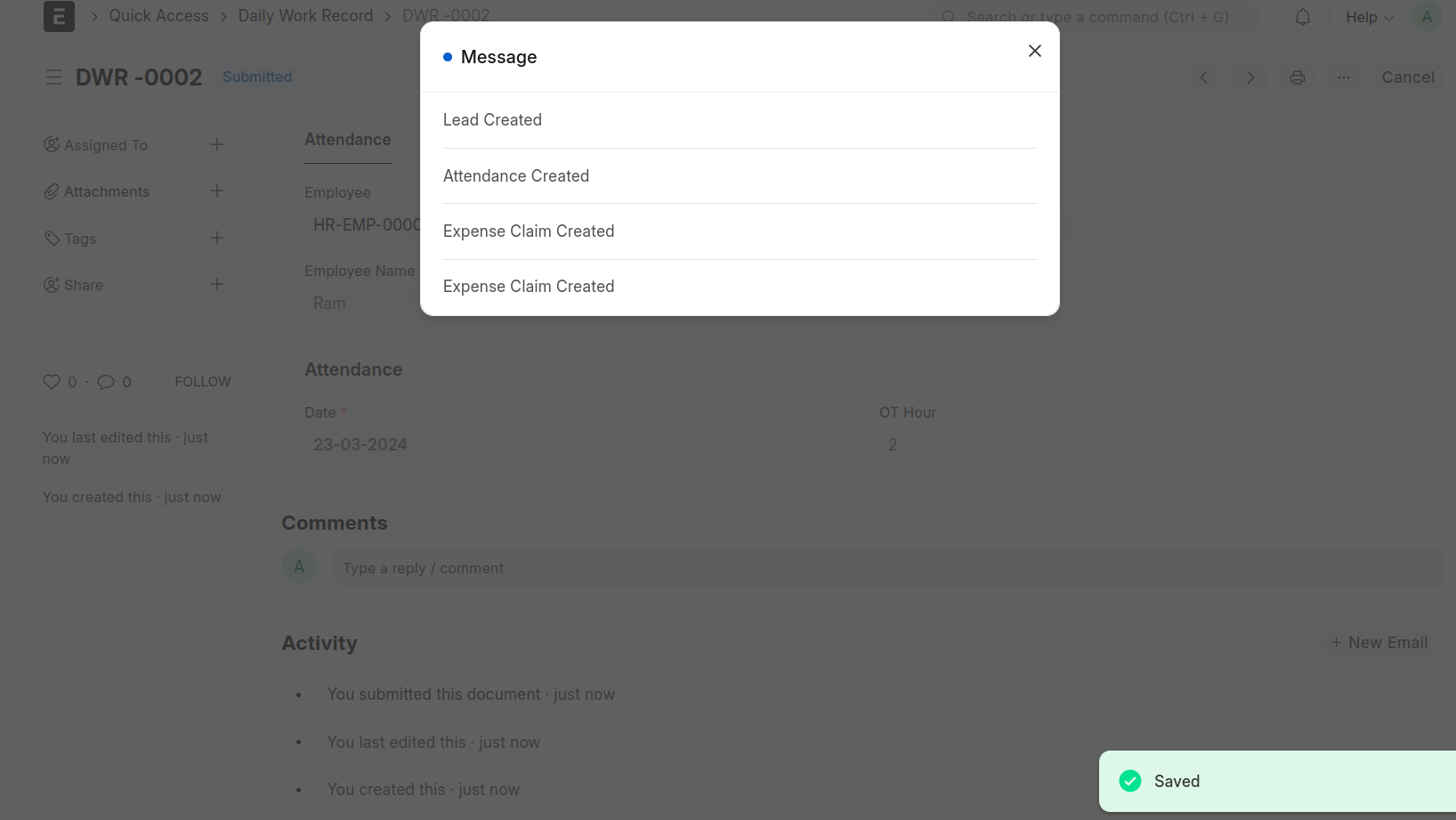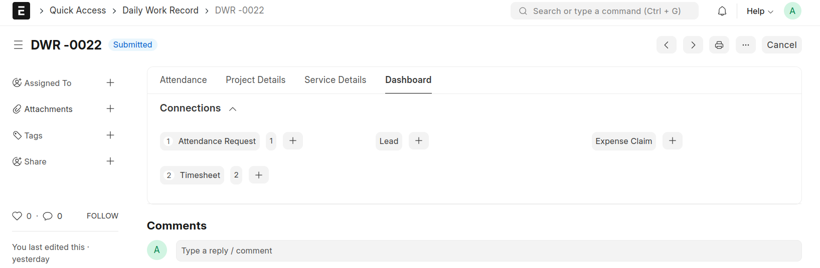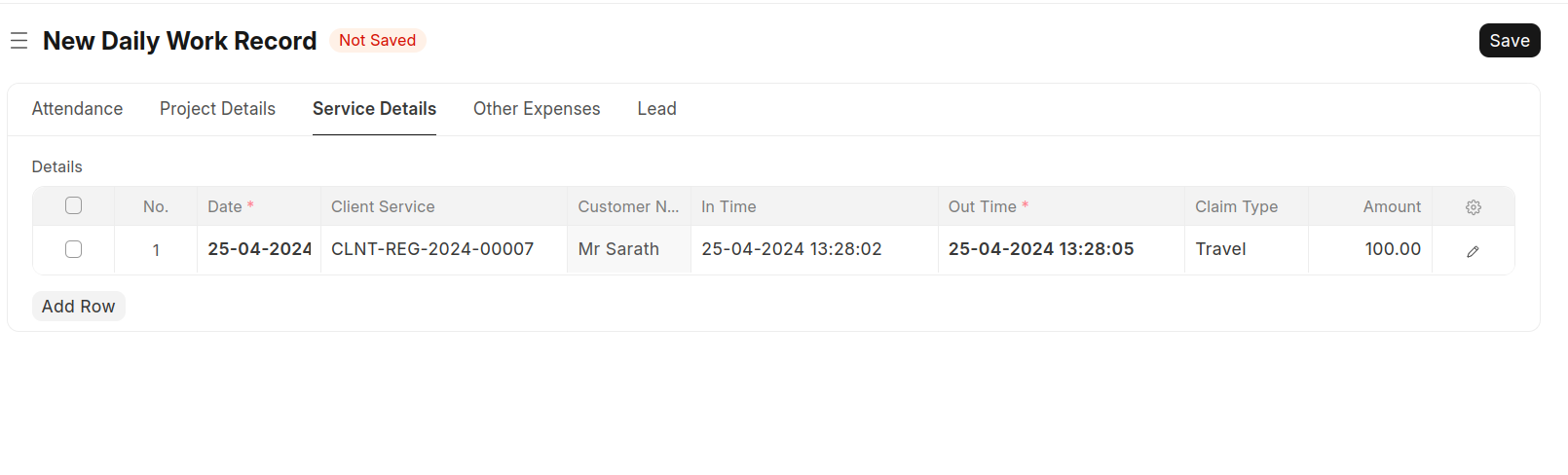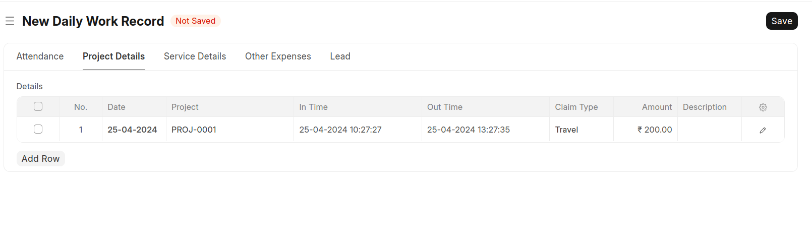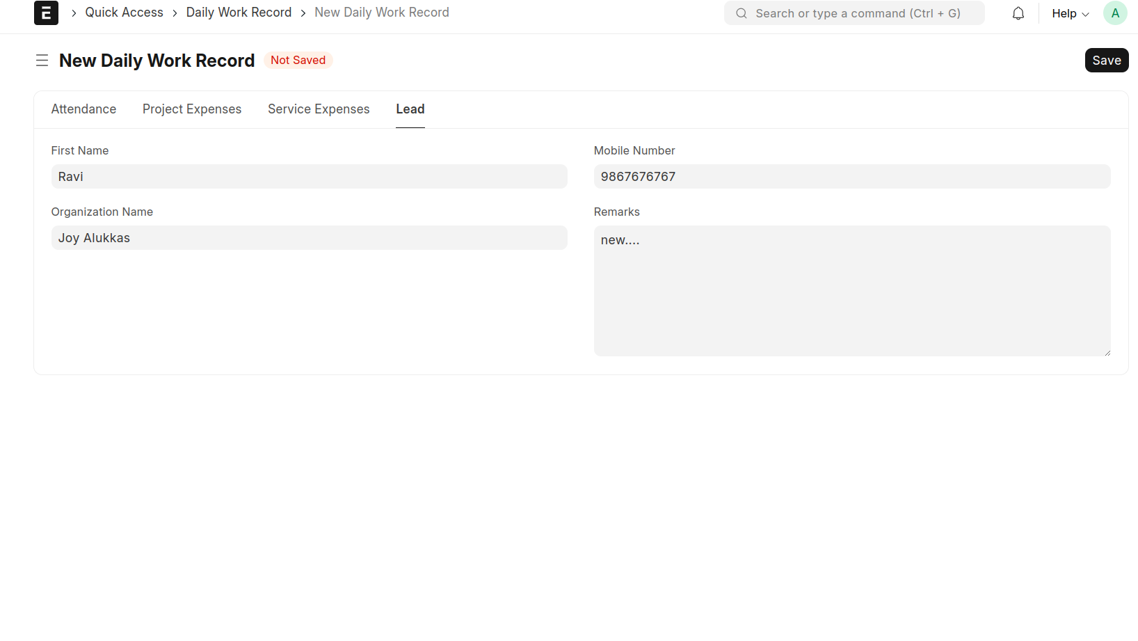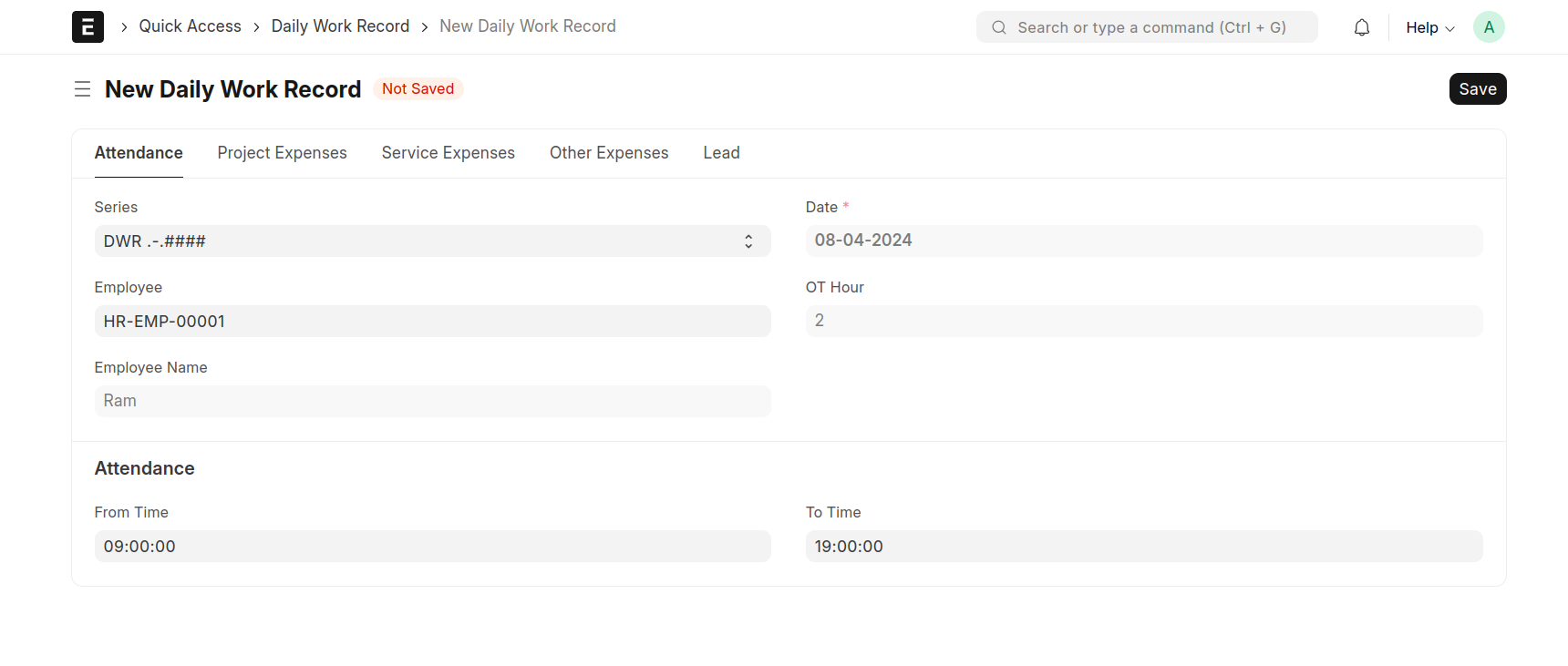 Create a Daily Work Record. This Document Is Used By Site Employees.To Mark Their Attendance,Lead and Expense Claim Details