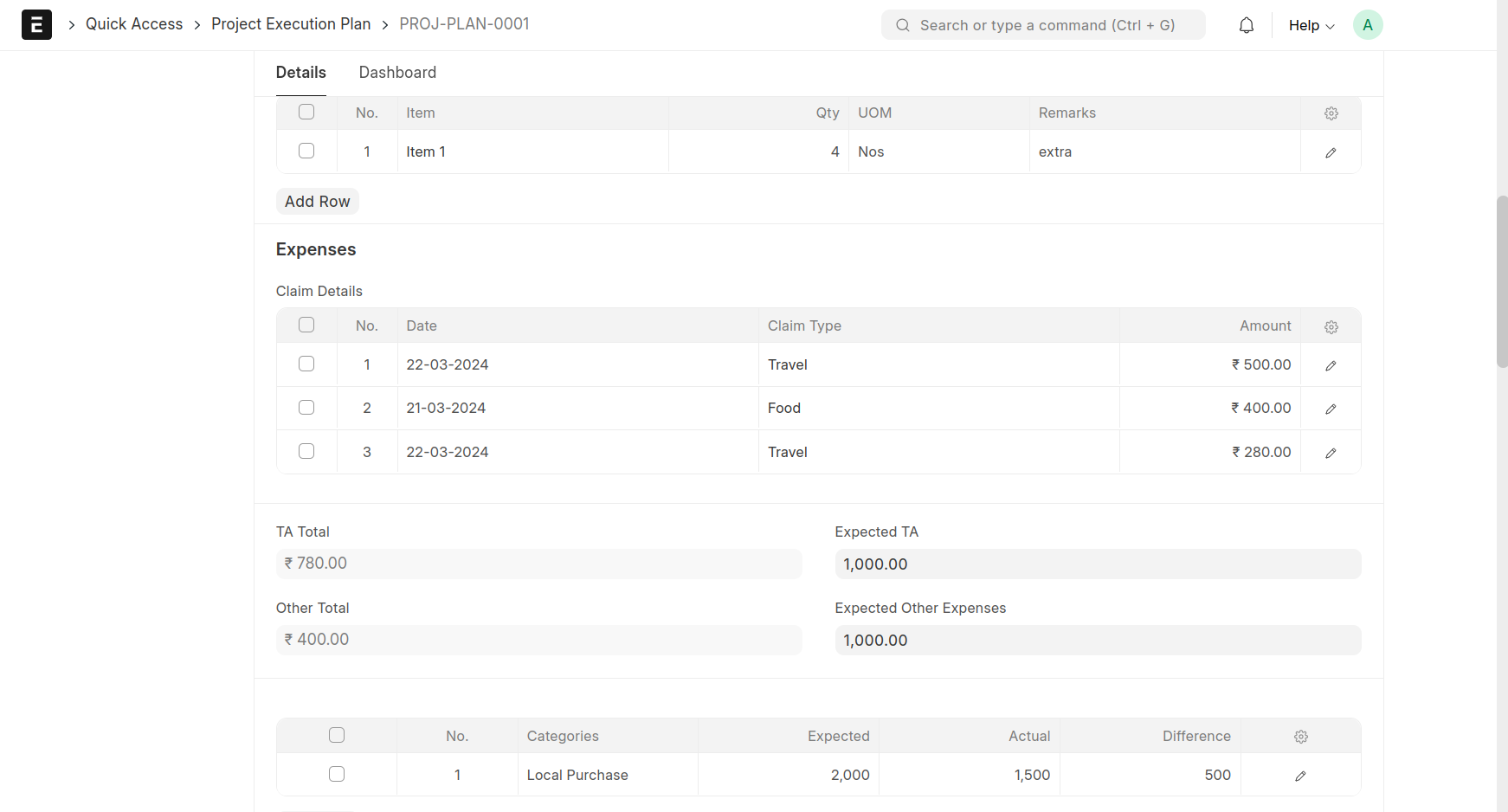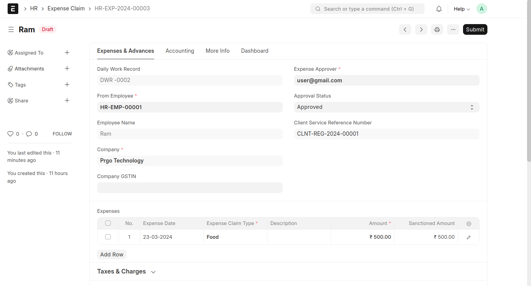 When The 'Daily Work Record' Is Submitted, Expense Claims Are Generated. Those Expense Claim Details Are Shown On The 'Expense Claim' Document.