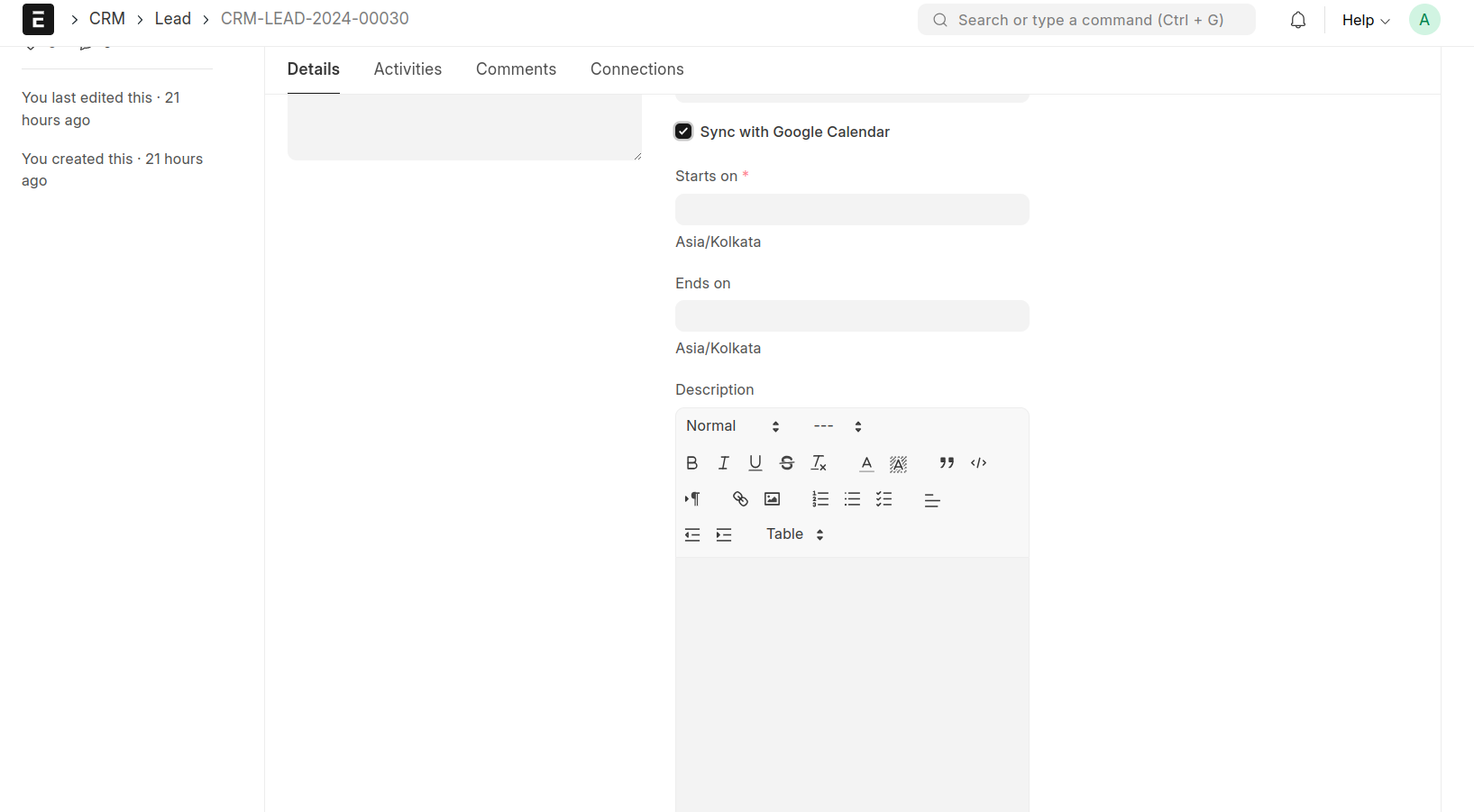 Create A Lead And We Can Add The Details(Meeting Schedule,Meeting Links etc.)In The Google Calendar.